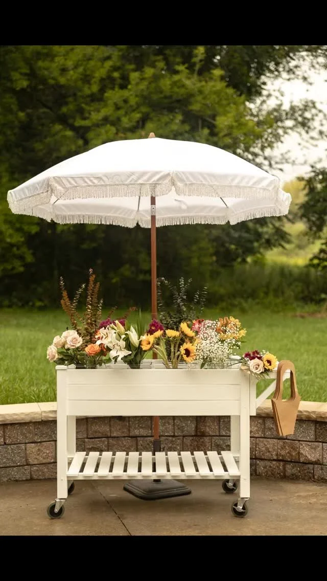 Our decor rentals include a bloom bar flower cart, backdrops, chairs, favor walls, sweet cart, and more!